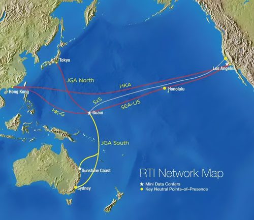 JGA South的初始規(guī)劃容量為36 Tbps,使悉尼的運營商中立數(shù)據(jù)中心可以銜接到坐落關(guān)島Piti的RTI電纜登陸站/中立數(shù)據(jù)中心。從關(guān)島,JGA South與中立數(shù)據(jù)中心無縫銜接,包含洛杉磯,加利福尼亞,美國,日本東京和香港特區(qū)等。不僅如此,JGA South還將銜接昆士蘭州的陽光海岸,成為有史以來第一條登陸悉尼以外的澳大利亞東海岸的新電纜。