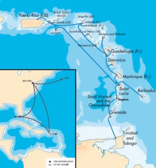 由美國國防部(DoD)巴國防信息體系局(DISA)頒發的這一海底光纜體系是古巴近年來最重要的電信基礎設施建設項目。關塔那摩和波多黎各政府運營的登陸點之間的海底電纜的海上裝置由世界電信的IT Intrepid電纜船成功完結。